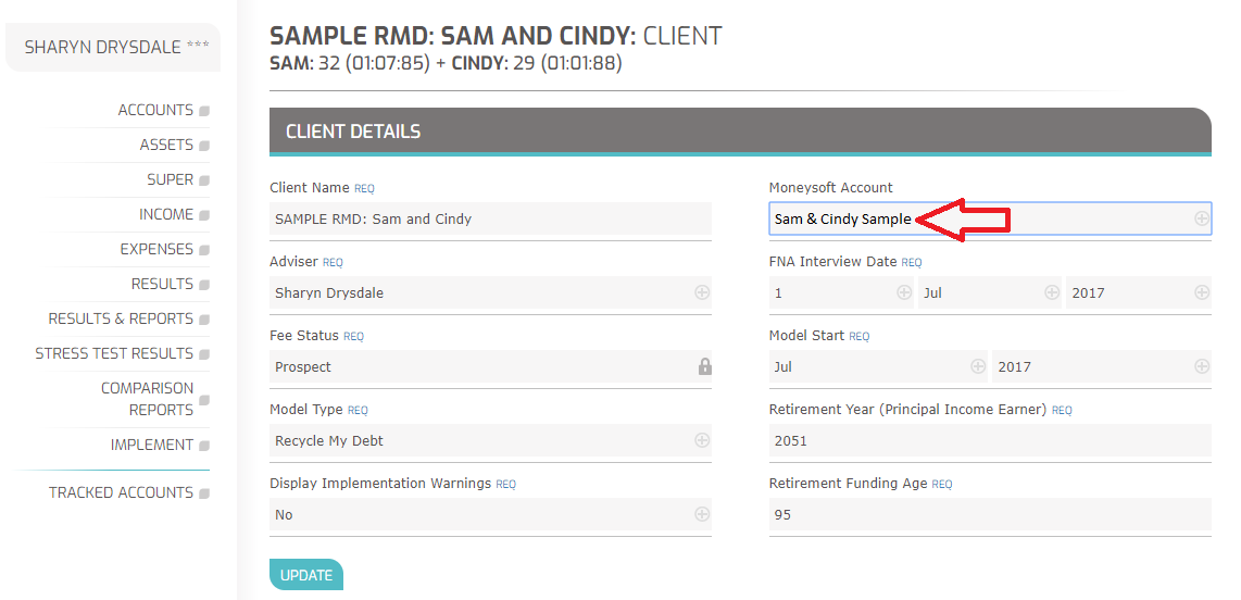 Step 3 - Link the Client's Moneysoft accounts to the Client's Tracked Accounts in Prospera