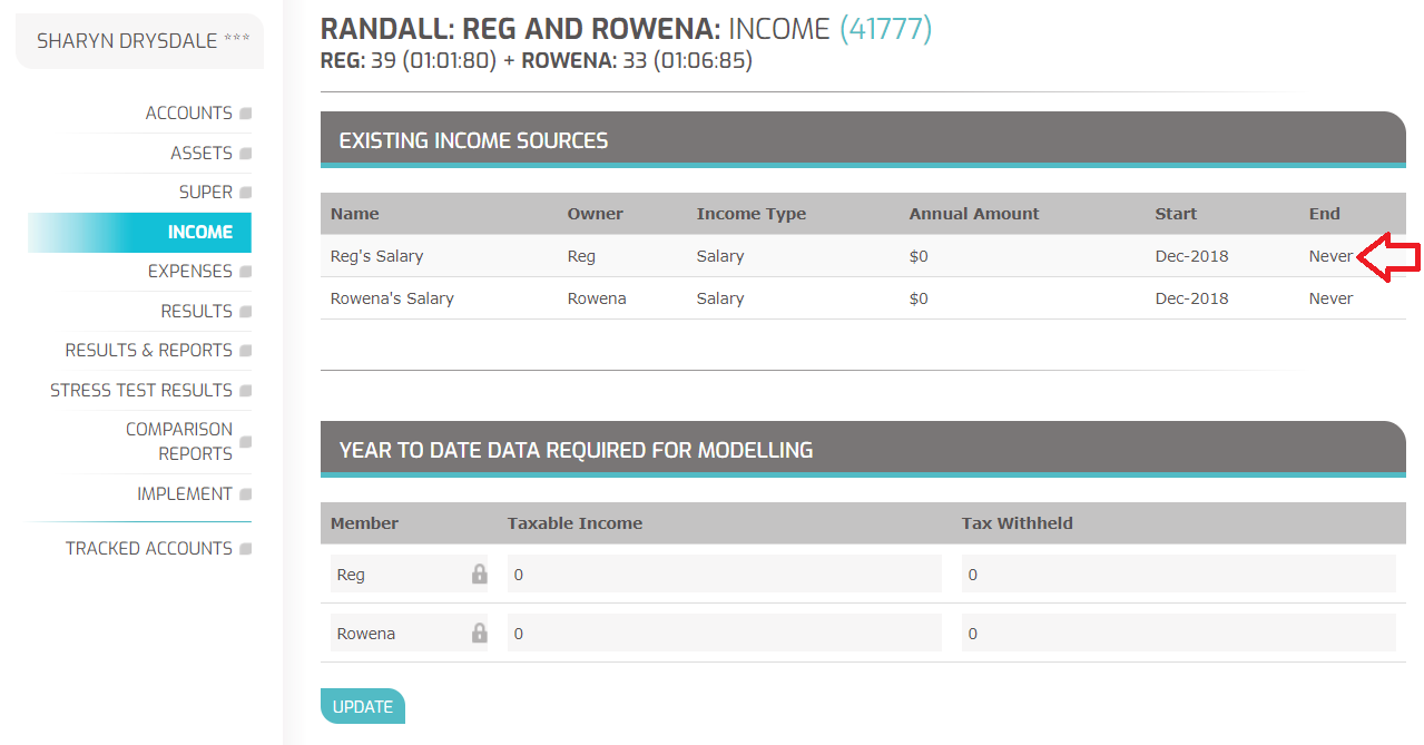 The salary data entry has been pre-populated with salary income for each client (as shown below).
